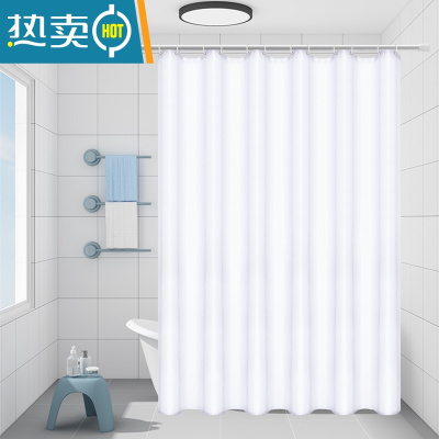 敬平白色酒店浴帘防水布免打孔卫生间隔断加厚纯色挂帘子浴室套装