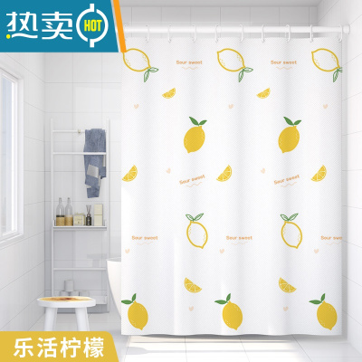 敬平ins北欧可爱卡通浴帘套装免打孔防水加厚遮光浴室挂帘隔断帘