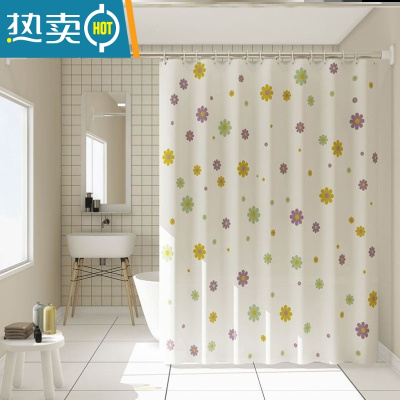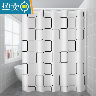 美帮汇新中式浴帘套装加厚防水布洗澡隔断卫生间淋浴挂帘免打孔浴室帘子