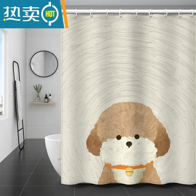 敬平油画小狗浴帘套装免打孔防水加厚遮光浴室窗帘隔断帘卫生间布帘