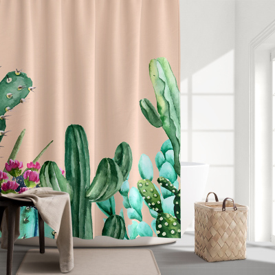 北欧浴帘浴室防水布浴缸用挂帘保暖仙人掌隔断帘卫生间套装免打孔