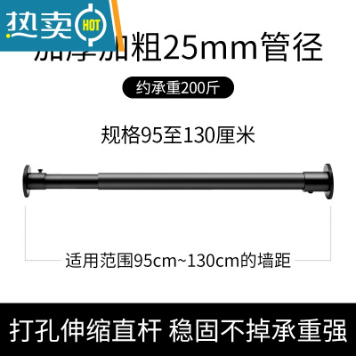 敬平打孔晾衣杆不锈钢伸缩杆卫生间浴室浴帘杆窗帘杆挂衣杆子晒衣阳台 黑色直杆打孔95-130cm 0.0米