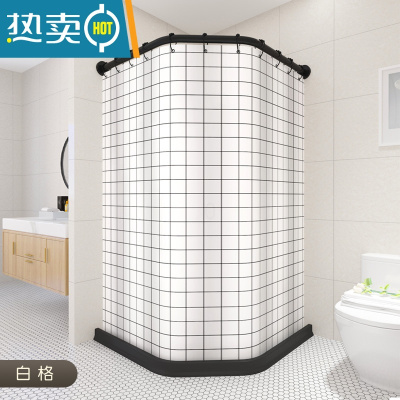 敬平钻石型浴帘套装免打孔浴室防水布隔断帘子卫生间挂帘磁吸淋浴