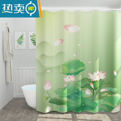 敬平浴帘套装免打孔防水布浴室卫生间淋浴帘子挂帘洗澡挡水隔断帘
