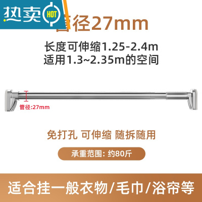 敬平伸缩杆免打孔安装窗帘支撑杆升缩不锈钢晾衣架浴帘撑遮挡帘晾衣杆 不锈钢 1.25-2.4米墙距适用[标准款