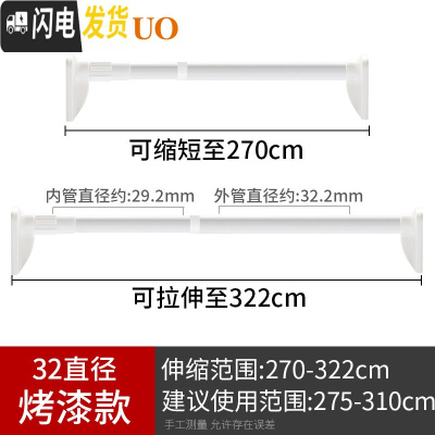 三维工匠卧室窗帘杆伸缩杆阳台晾衣杆免打孔晾衣架晒衣卫生间浴帘杆撑杆子 32.2直径(烤漆款)270-322厘米