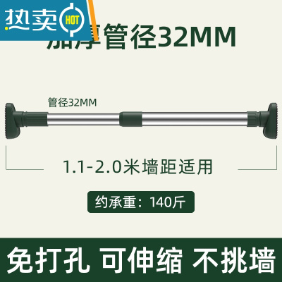 敬平免打孔伸缩杆晾衣杆衣架不锈钢安装窗帘挂杆浴帘杆子挂衣柜支撑杆 轻奢绿 1.1-2.0米墙距适用 不锈钢[加