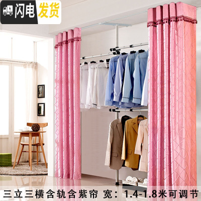 三维工匠顶天立地凉晒架衣架室内落地挂晾衣架阳台升降伸缩杆简易单杆卧室 三立三横含紫帘 大晾衣架配件