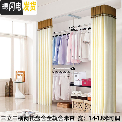 三维工匠顶天立地凉晒架衣架室内落地挂晾衣架阳台升降伸缩杆简易单杆卧室 三立三横两托盘含紫帘 大晾衣架配件