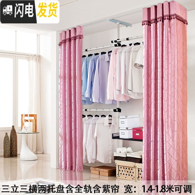 三维工匠顶天立地凉晒架衣架室内落地挂晾衣架阳台升降伸缩杆简易单杆卧室 两立两横加宽含紫帘 大晾衣架配件