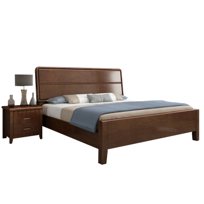 洛泰远 LTY4022911 实木床1.8米床含一个床头柜 胡桃色