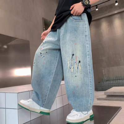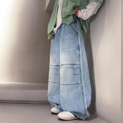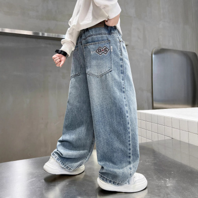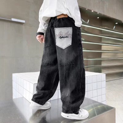 男童春装牛仔裤2026春秋新款中大童男孩痞帅风阔腿直筒裤儿童裤子