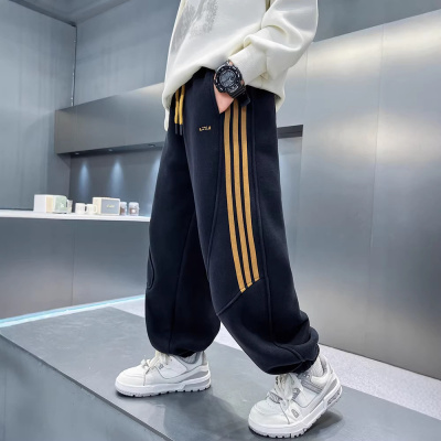 男童加绒裤子秋冬款新款儿童冬季装加厚痞帅一体绒炸街运动裤