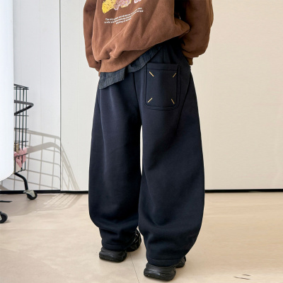 男童加绒牛仔裤秋冬款新款大男孩冬装儿童冬季一体绒加厚裤子