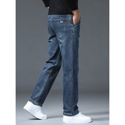 中年男士牛仔裤秋冬厚款新款弹性宽松直筒耐磨耐穿男士休闲长裤子