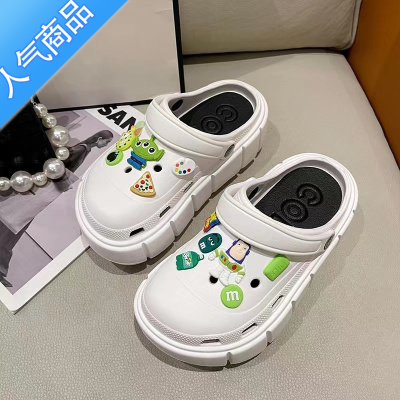 SUNTEK厚底洞洞鞋罗马凉鞋女夏沙滩海边松糕鞋卡通网红凉拖鞋室外穿超火