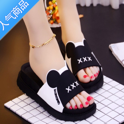 SUNTEK拖鞋女夏季韩版新款松糕厚底可爱卡通女凉拖浴室外穿防滑拖鞋夏天