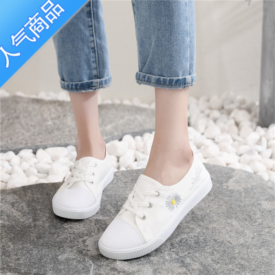 SUNTEK一脚蹬帆布鞋子女2023春季新款小雏菊老北京板鞋学生护士小白鞋女