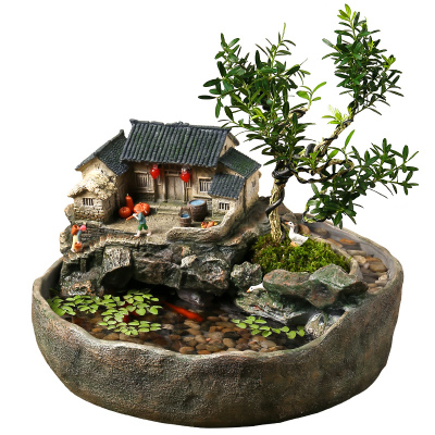 桌面微景观小鱼缸流水摆件循环水客厅办公室装饰开业乔迁新居礼品