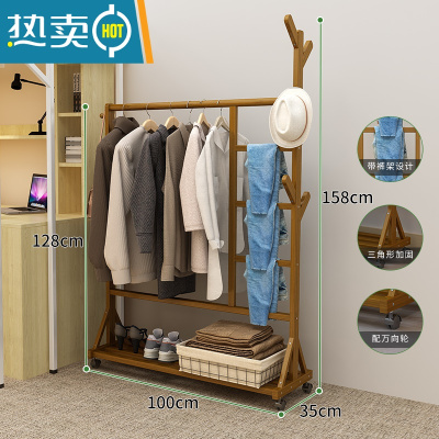 戴劲 简易衣帽架实木卧室落地挂衣架柜子衣服包置用简约现代收纳架 加固加粗升级--裤架款--茶色