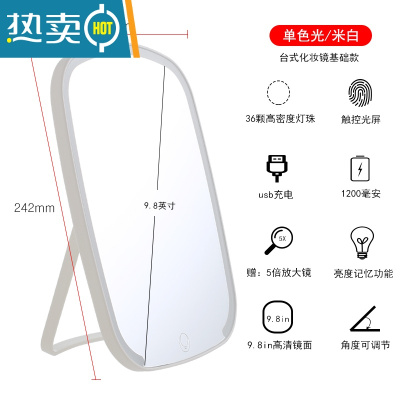 敬平小镜子化妆镜台式桌面梳妆台led灯便携简约折叠宿舍学生家用美容便携式用镜 LED补光镜单色光-白色