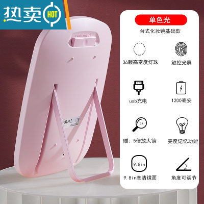 敬平小镜子化妆镜台式桌面梳妆台led灯便携简约折叠宿舍学生家用美容便携式用镜 LED补光镜单色光-粉色
