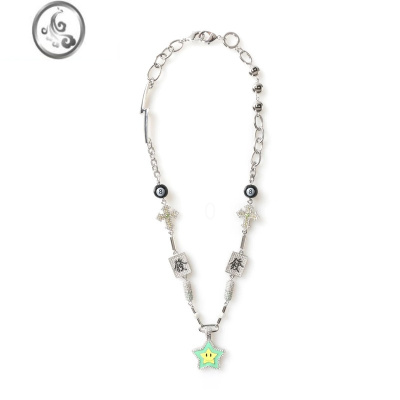 JiMiPSYP正确版Maison Emerald镶钻说唱笑脸幸运星项链嘻哈潮男女吊坠