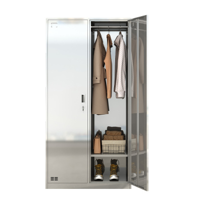 易企采 304不锈钢二门不锈钢二门更衣柜收纳2门储物柜员工换衣柜宿舍无尘车间衣柜鞋柜