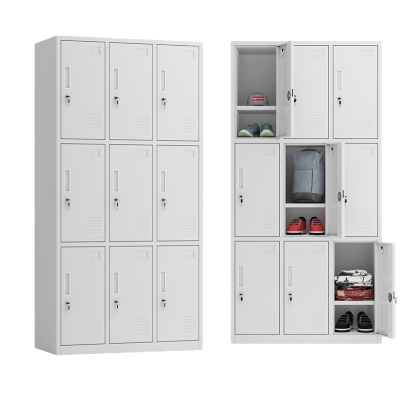 易企采 钢制加厚九门衣柜员工更衣柜储物柜学生宿舍带锁储物柜浴室衣柜健身房存包柜铁皮柜