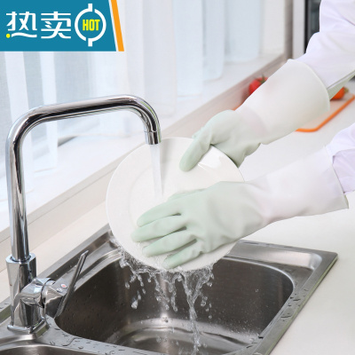 敬平洗碗手套家务洗衣洗菜做饭清洁橡胶防水防油防滑彩色厨房耐用保姆 抹茶粉 L
