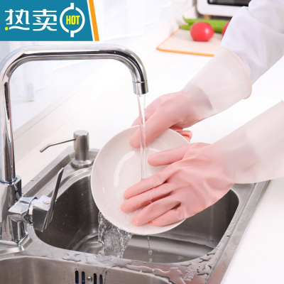 敬平洗碗手套家务洗衣洗菜做饭清洁橡胶防水防油防滑彩色厨房耐用保姆 抹茶粉 S