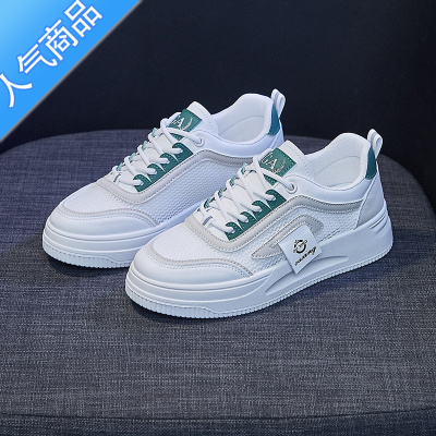 聚范男鞋夏季青少年平底休闲鞋皮面防水百搭软底运动小白板鞋增高春季