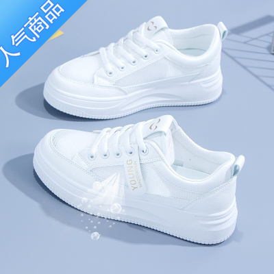 SUNTEK港风小白鞋女2023夏季薄款透气厚底复古美式板鞋学院风小众运动鞋