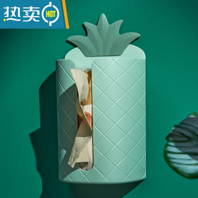 敬平抽纸盒壁挂式家用客厅创意免打孔倒挂厨房卧室厕所收纳挂壁纸巾盒 菠萝绿
