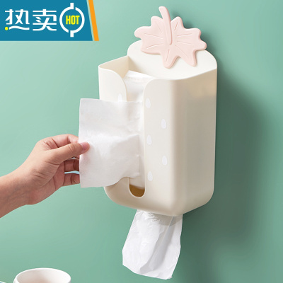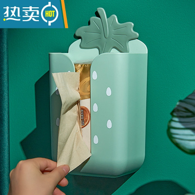 敬平抽纸盒壁挂式家用客厅创意免打孔倒挂厨房卧室厕所收纳挂壁纸巾盒 草莓绿