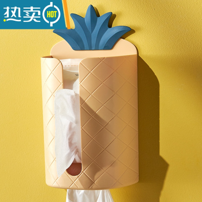 敬平抽纸盒壁挂式家用客厅创意免打孔倒挂厨房卧室厕所收纳挂壁纸巾盒 菠萝黄
