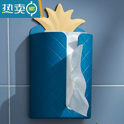 敬平抽纸盒壁挂式家用客厅创意免打孔倒挂厨房卧室厕所收纳挂壁纸巾盒 菠萝蓝