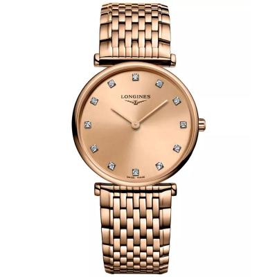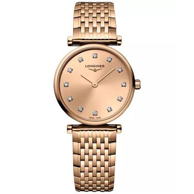 浪琴(LONGINES)女士玫瑰金机械表简约时尚钻石刻度防水24mm腕表
