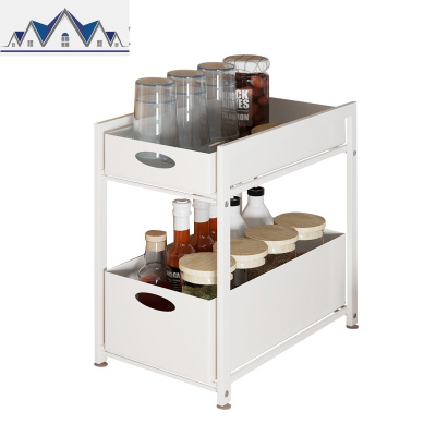 厨房置物架台面式厨下推拉收纳伸缩杂物柜下橱柜用品下水整理架 三维工匠