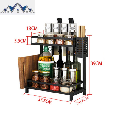 不锈钢厨房置物架调料架子双层桌面台面多功能家用刀架调味品收纳 三维工匠