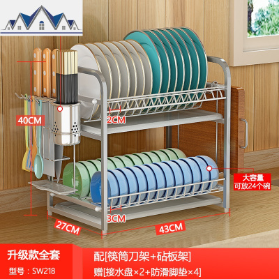304不锈钢家用厨房置物架收纳架柜落地架子多层沥水洗碗碟架台面 三维工匠