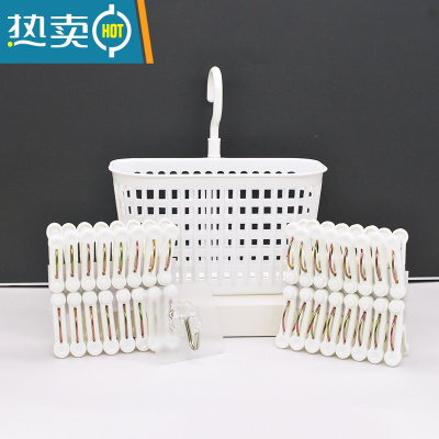 敬平衣服夹晾衣架晒衣晾衣夹强力防风家用单个小号塑料夹子晒晾夹 吊篮装:小号无痕夹32个白色 送挂钩