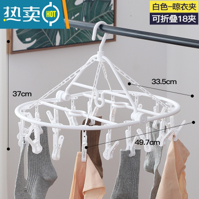 敬平晾衣架多夹子袜子夹晒衣架挂钩晾衣撑家用内衣宝宝婴儿多功能器 白色:18夹[可折叠塑料晾衣夹] 1个