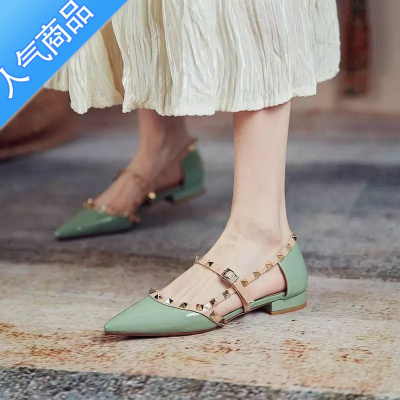 SUNTEK铆钉凉鞋女款夏季2023新款百搭软底仙女风露趾时尚平底罗马鞋低跟