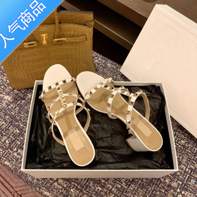 SUNTEK时尚百掿气质中跟拖鞋女2023夏季新款铆钉粗跟高跟凉拖鞋女ins潮
