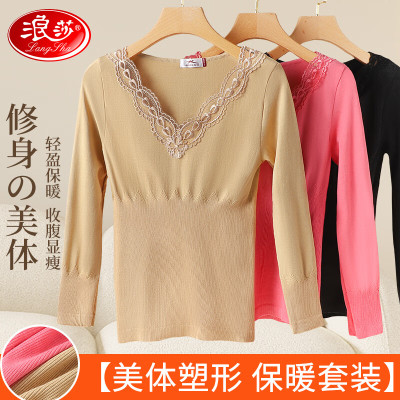 浪莎秋衣秋裤套装女修身美体V领性感保暖内衣提臀显瘦隐形打底衫