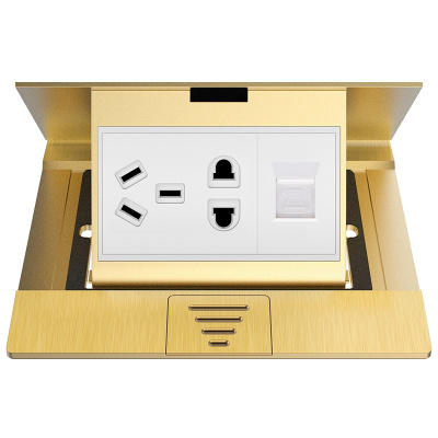 欧奔(EUROB)地插座全铜防水新款二三插五孔电源加电话地板插座弹起式地插