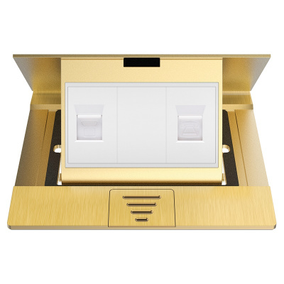 欧奔(EUROB)地插座全铜防水弹跳两位电脑地面插座双网线地插家装地板插座