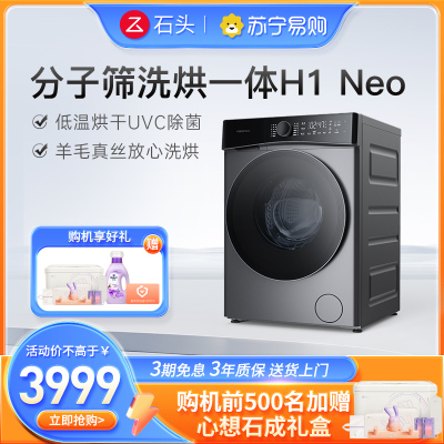 石头洗衣机 石头分子筛12KG洗烘一体家用全自动滚筒洗衣机H1Neo 除菌 太空灰