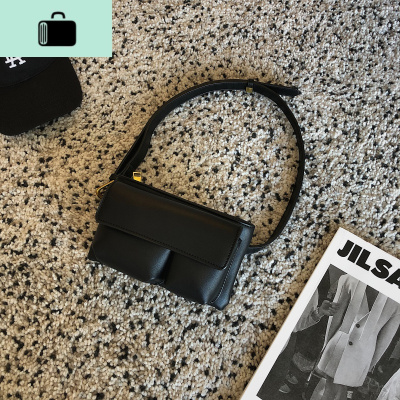 态度 / 搭配好看 黑色皮质 迷你斜挎胸包 韩版ins复古网红腰包 男NEW LAKE 黑色腰包男